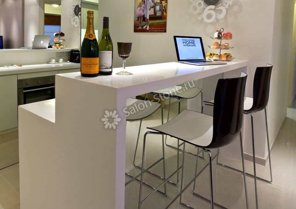 Но, являясь обладателем красивой поверхности, не забывайте о ней заботиться. Постарайтесь не ронять на нее слишком тяжелые предметы, не подвергать резким и сильным перепадам температур. Обязательно протирайте ее насухо, чтобы не допустить появления известковых пятен. При бережном и грамотном отношении ваша столешница прослужит вам не одно десятилетие.