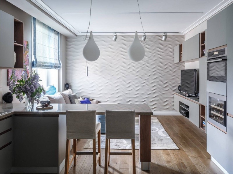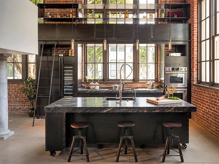 Направление в дизайне Loft — это отсутствие декоративных элементов с возможным разделением пространства на зоны с помощью барной стойки в стиле лофт из искусственного камня. Она может быть выполнена с имитацией дерева, гранита, мрамора — все варианты органично впишутся в дизайн интерьера.