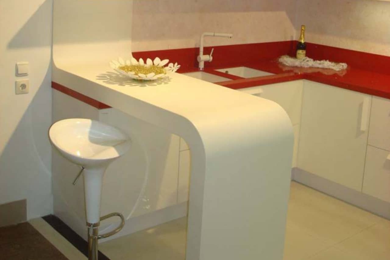 Благодаря гибкости агломерата, офисная и ресторанная мебель выполняется различных форм, даже самых необычных. Непористая структура композита не дает влаге и загрязнениям впитаться в поверхность. Каменные стойки легко очищаются и надолго сохраняют изысканный вид.