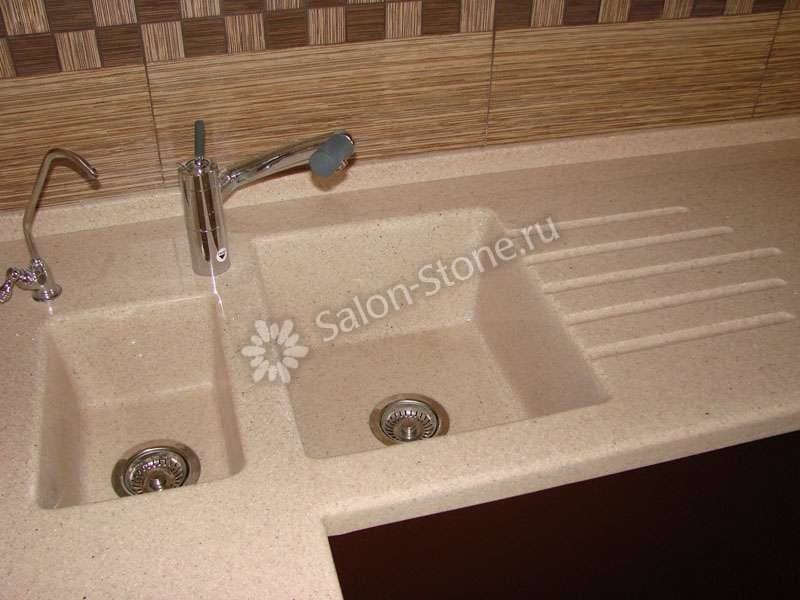Вместительность и удобство пользования удачно объединяют в себе мойки из искусственного камня двойные. Хозяйки наверняка оценят возможность мыть посуду и продукты в разных чашах, да и на кухнях ресторанов такие габаритные раковины придутся как нельзя кстати. Они всегда остаются чистыми и аккуратными: в плотной поверхности без пор не скапливается влага, пищевые пятна или грязь.