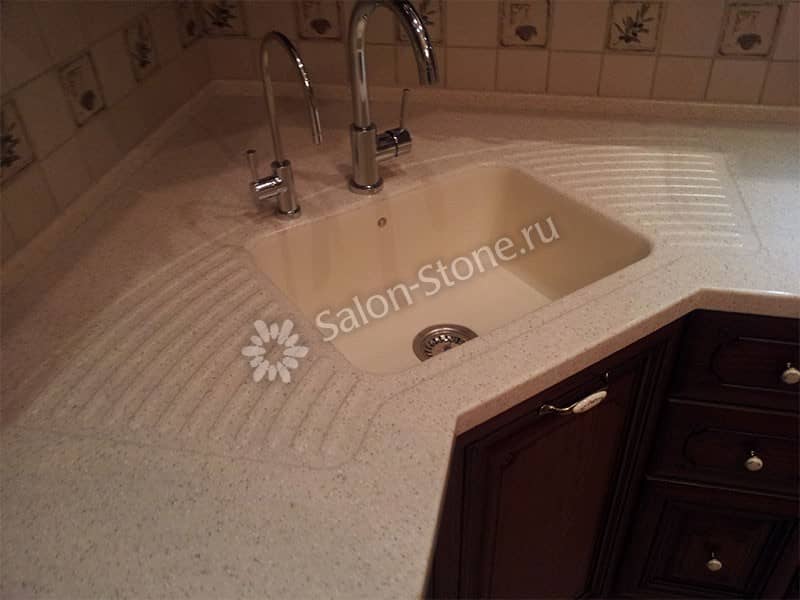 За счет строгой геометричности форм, мойки из искусственного камня прямоугольные хорошо вписываются в помещения современного, минималистического или классического дизайна. Композит разнообразен по палитре, так что подобрать подходящий оттенок несложно. В каталоге «Салона камня» есть образцы, похожие на природные материалы или, наоборот, фантазийные и смелые.