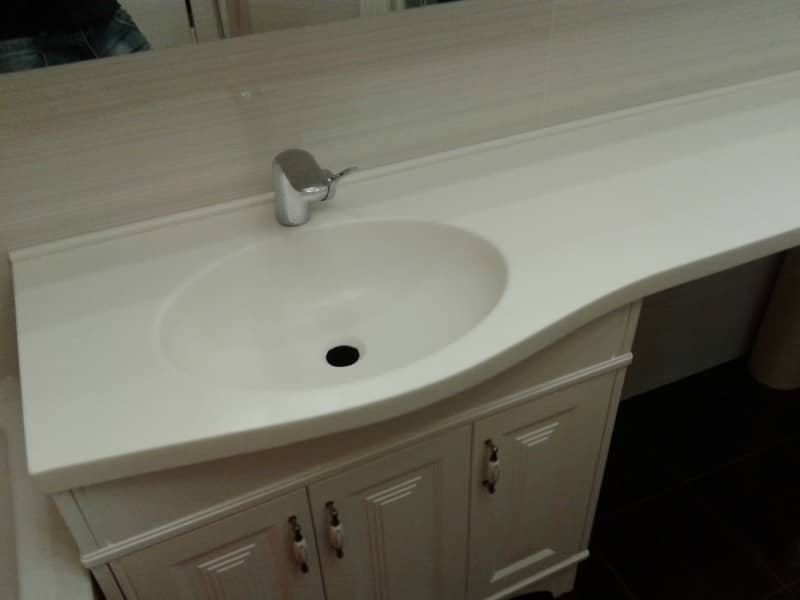 Бежевая столешница из искусственного камня Hi-Macs в ванную